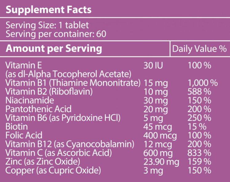 - مکمل غذایی مولتیویتامین-مینرال حاوی ویتامینها، مواد معدنی، جینسینگ، لسیتین سویا و روتین