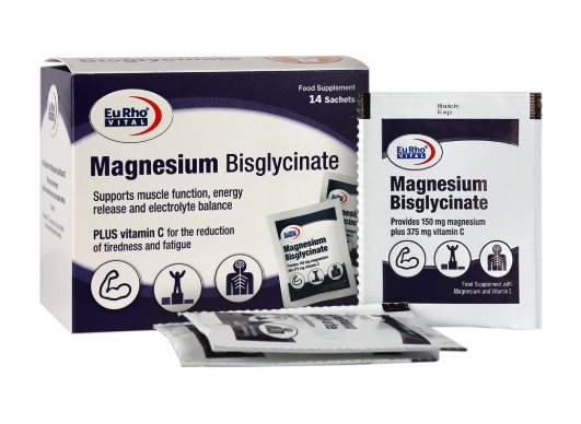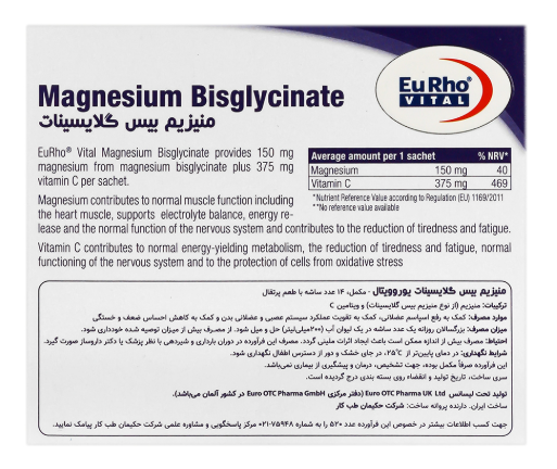 - منیزیم بیس گلیسینات یوروویتال حاوی 150 میلی گرم منیزیم در هر ساشه